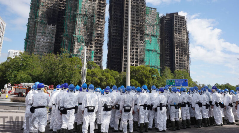 警務處災難遇害者辨認組人員到大埔宏福苑災場進行勘察