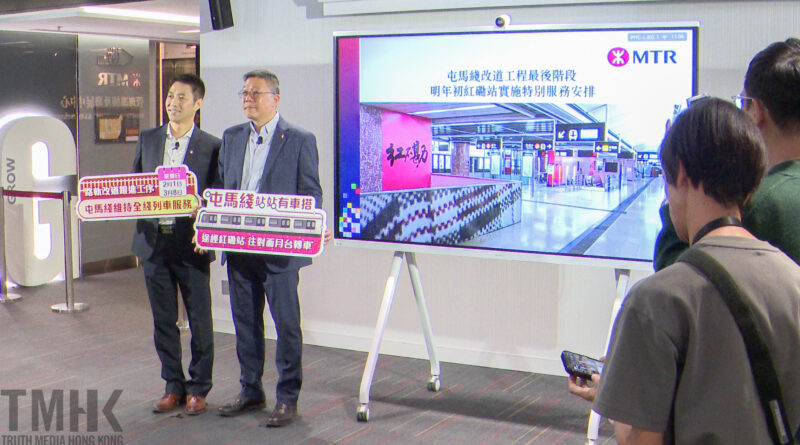 為配合屯馬綫紅磡至尖東段的路軌接駁跟進工程,港鐵宣布將於明年二月一日及三月八日兩個星期日實施特別服務安排。屆時,屯馬綫將採取分段行駛模式,列車分別由屯門及烏溪沙開出後,均會以紅磡站為終點。乘客抵達紅磡站後,必須下車並前往對面月台轉乘,方可繼續餘下行程,預計旅程時間將延長約四至五分鐘。