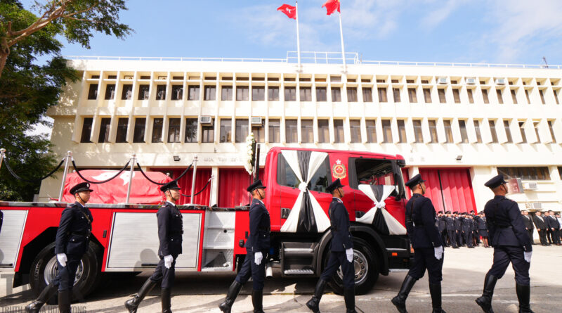 何偉豪靈車抵沙田消防局 局內響起「三短一長」鐘聲象徵何正式「落更」