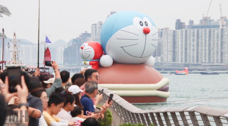 維港「海上大巡遊」活動迎來最後一日。四座大型充氣公仔,包括多啦A夢、滑嘟嘟、LABUBU及Elmo,於下午二時起由添馬公園對開海面出發,途經東岸公園及星光大道等地標,在維港巡遊兩圈,歷時約三小時。