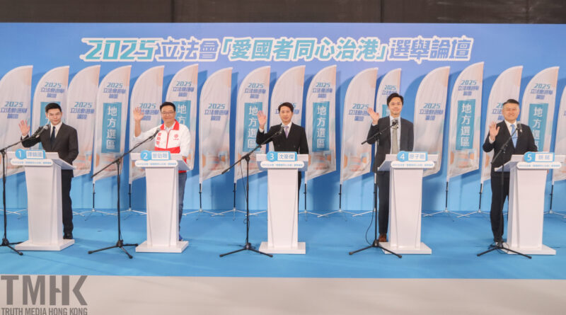 「二零二五立法會『愛國者同心治港』選舉論壇」今日舉行新界北地方選區場次,該區五名候選人,包括新社聯譚鎮國、工聯會曾勁聰、沈豪傑、新民黨廖子聰及民建聯姚銘,全數出席。